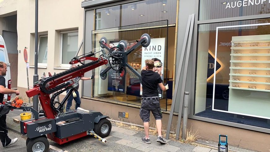 Nicht immer geht bei der Montage alles glatt! In solch einem Fall sind starke Partnerschaften umso wichtiger, wie Glas Stebani aus Essen unterstreicht. Vor kurzem sollte eine Schaufensterscheibe in Rüttenscheid gewechselt werden.