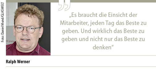 Ralph Werner über das Firmenleitbild: „Eigentlich gratwandeln wir zwischen zwei Gruppen. Auf der einen Seite sind das die Kunden und auf der anderen Seite die Mitarbeiter. Wir denken, dass beide gleich wichtig sind. Aber um den Kunden begeistern zu können und glücklich zu machen, dazu braucht es auch die Einsicht der Mitarbeiter, jeden Tag das Beste zu geben. Und wirklich das Beste zu geben und nicht nur das Beste zu denken.“