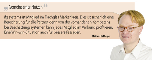 Die größte Kundengruppe für die Beschattungslösungen im SZR sind Fassadenbauer. Kommen von diesen die Anfragen, werden bei ifg für jedes Objekt zuerst individuelle Machbarkeitsstudien und Produktprüfungen erstellt, bevor es an die Fertigung der Lamellen-Gläser geht. Dann koordiniert das Unternehmen die Lieferung der fertigen Gläser bis an die Baustelle und übernimmt die Programmierung und Inbetriebnahme der Steuerungen.